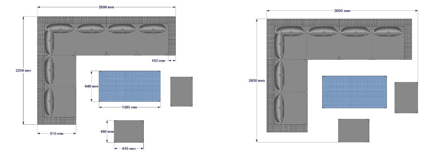 Overall size for large corner sofa: 288cm (L) x 225cm (W) x 68cm (H)